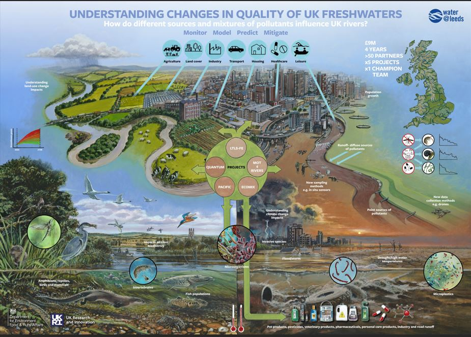 This funding call is being administered by the University of Leeds as host of the UK Freshwater Quality Research Programme Champion Team. The University of Leeds will fund one successful project at 80% of the full economic cost (up to £820,000). The successful project will become part of the wider UK Freshwater Quality Research Programme, which is funded by NERC and Defra.