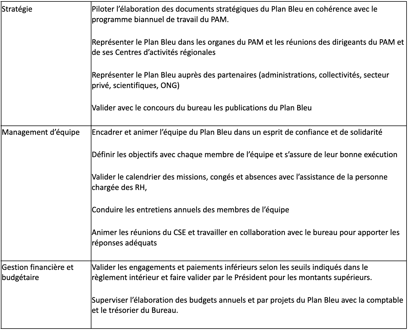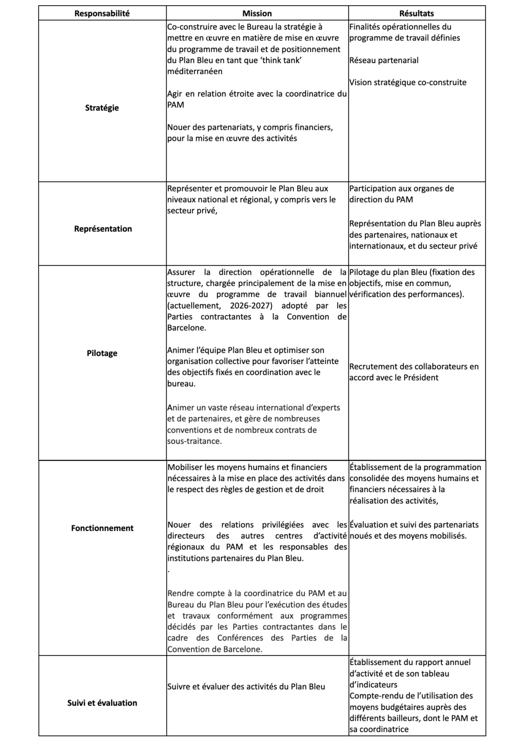 The position involves assuming the role of Director within the Blue Plan, reporting directly to the President. The main missions and associated results are as follows: